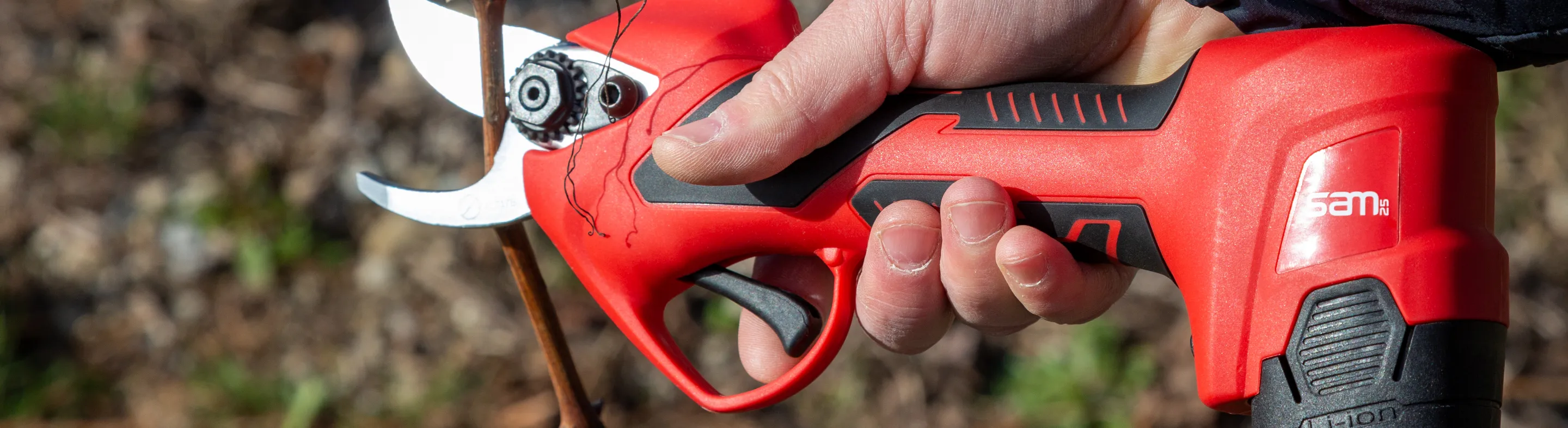 Le sécateur SAM 25 sans fil a été pensé pour réduire les TMS (Troubles Musculo-Squelettiques) et les tendinites : léger (950 grammes avec batterie), extrêmement maniable grâce à sa petite taille, il passe partout et permet d’optimiser les temps de coupe.